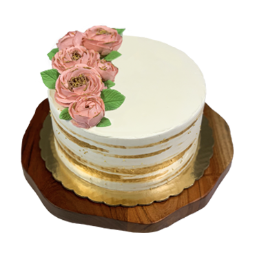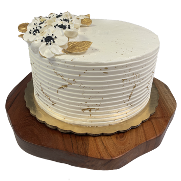 Choose the combination of the cake layer and buttercream flavors to build the structure of this cake. We’ll top it off with hand-made gum paste flowers and your personally selected message.