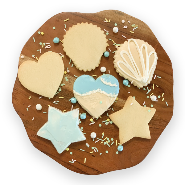 Kits include: Chef Danielle’s scratch-made sugar cookies (pre-baked & ready for decorating), 4 piping bags pre-filled with house-made buttercream in an assortment of colors*, and 2 varieties of sprinkles/decorating sugars. *Colors may vary from those pictured.